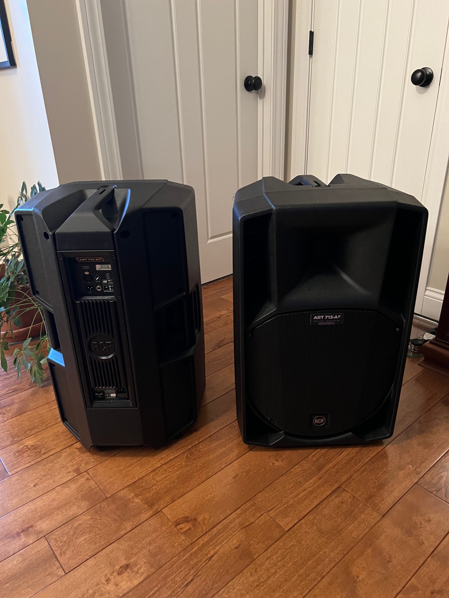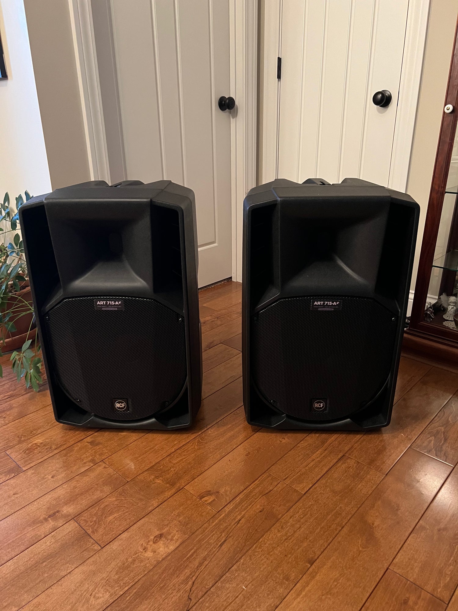 A pair of RCF ART 715-A MK4 Powered PA Speakers in great condition includes covers.