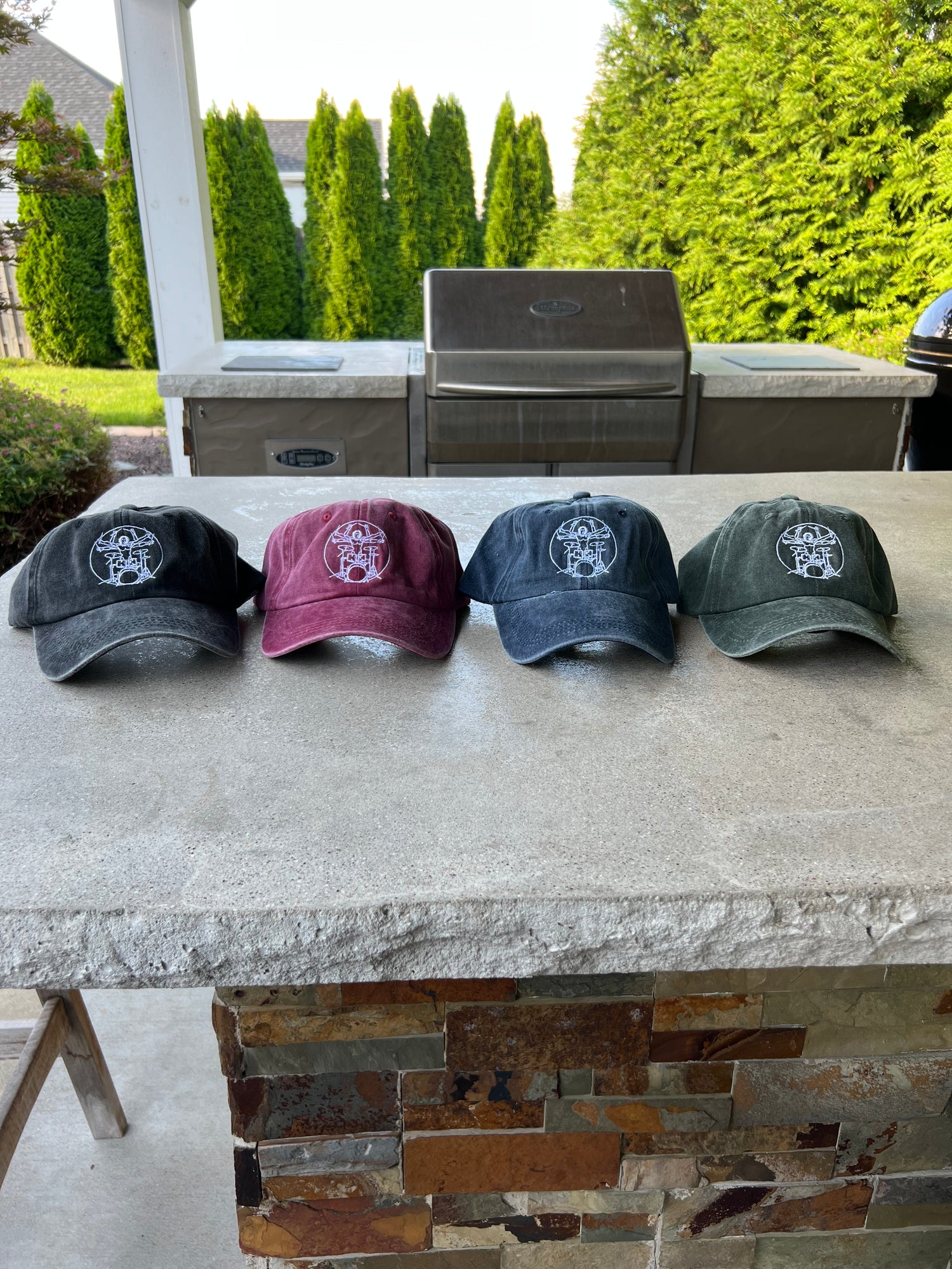 My signature embroiled hat on quality faded denim in Dark Grey, Blue, Green or Red