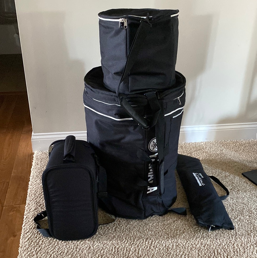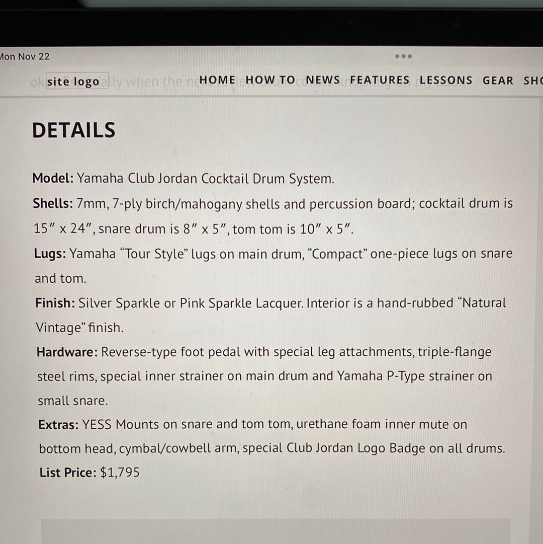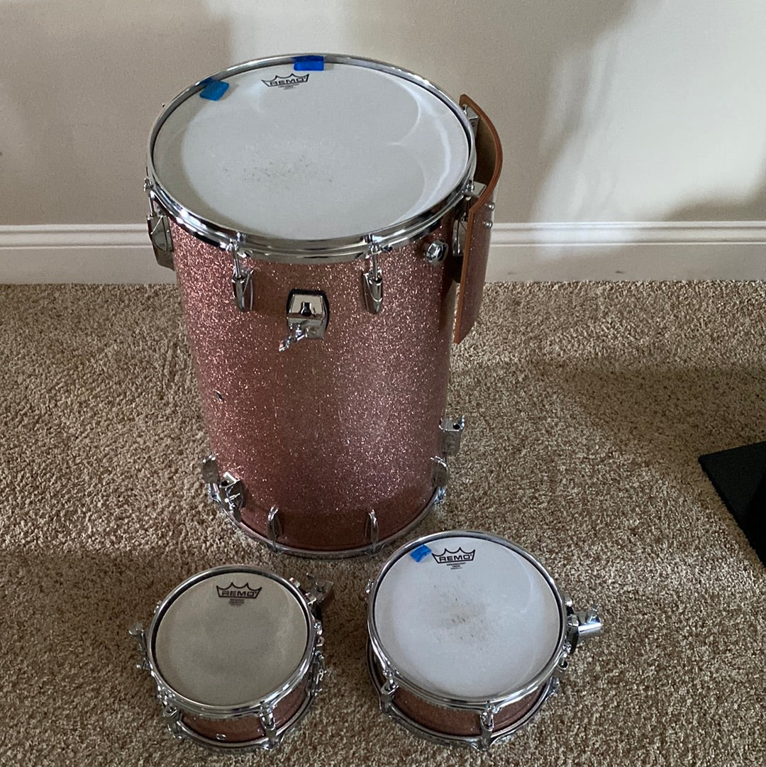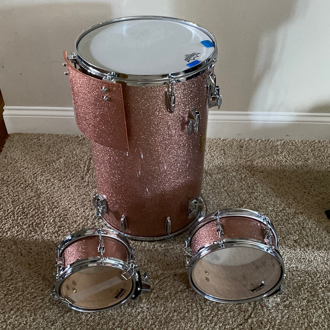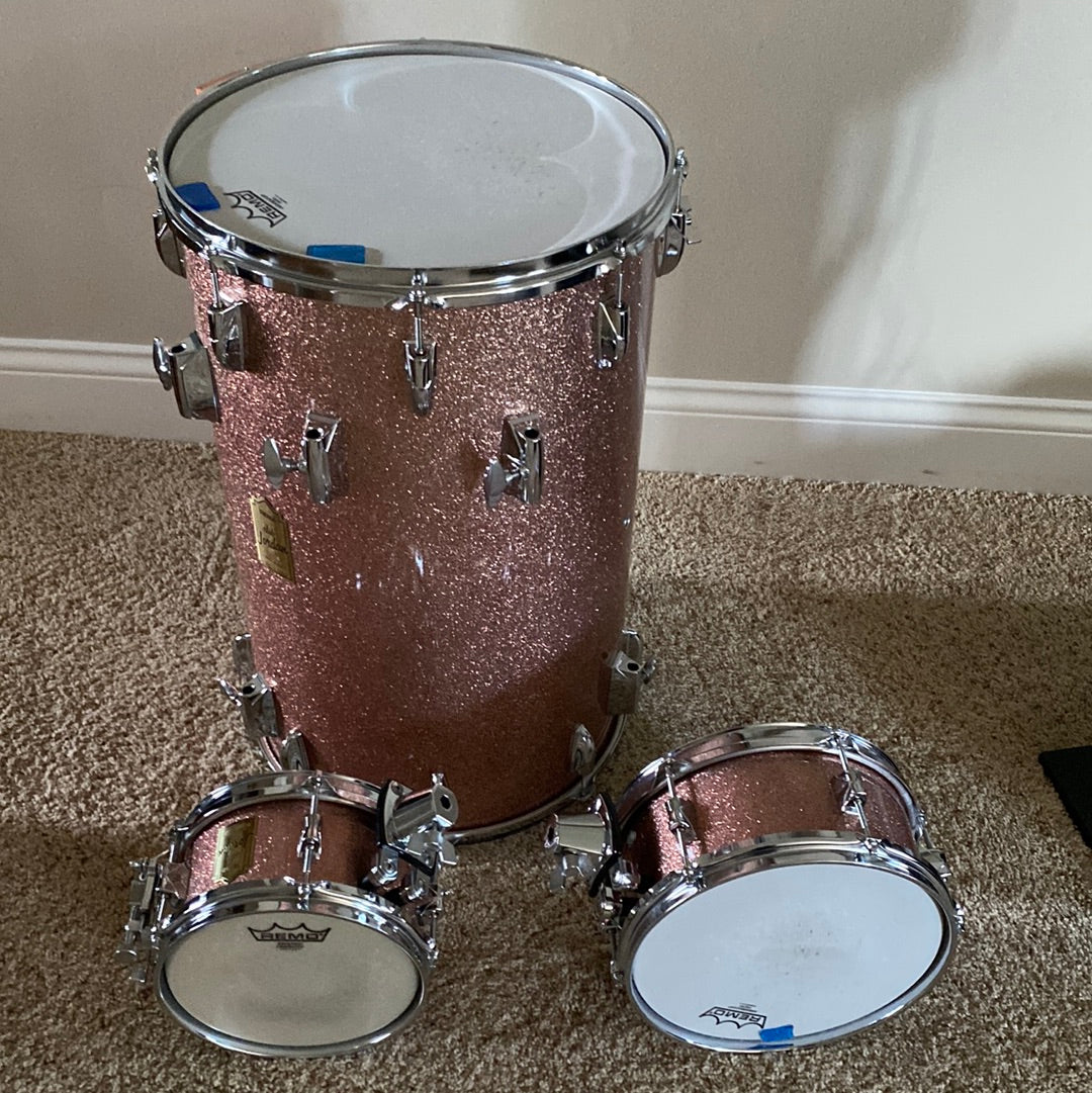 The elusive Club Jordan Cocktail kit. Yamaha ceased production many years ago now, so this unicorn is in excellent condition in Pink Sparkle including everything you need but a crash ride and a pair of hats! Cases and hardware shown included!! Just a little tidbit of history about this kit, I bought it from its original owner, Fred White, of Earth Wind and Fire fame.