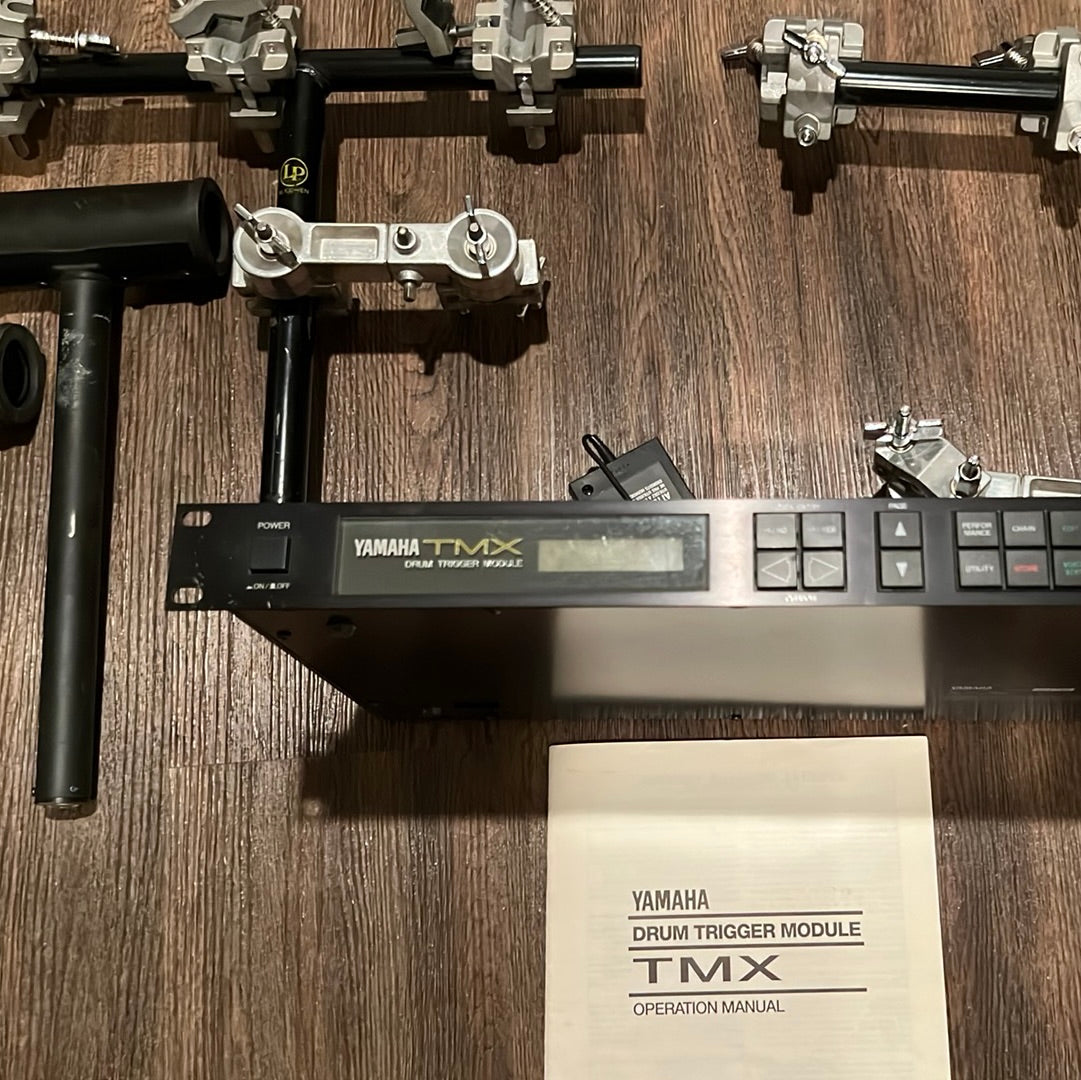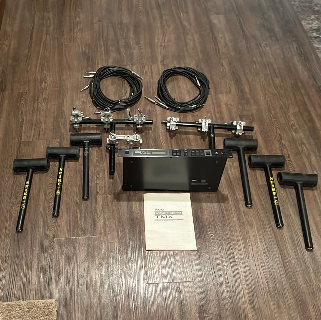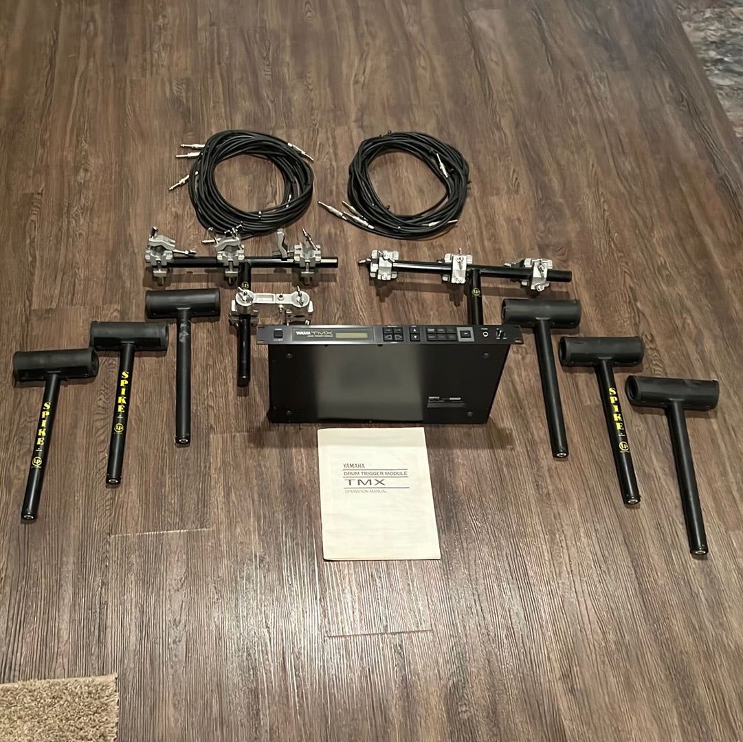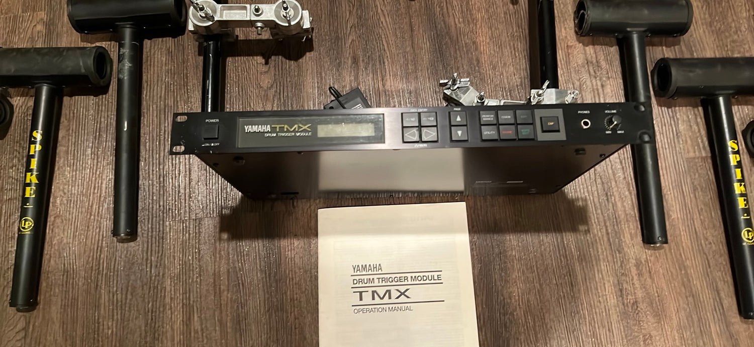 This is a early generation drum to midi trigger module, includes 6 LP Spike trigger bars, mounting hardware and cables. Sold “As Is”